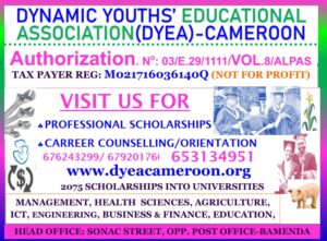 DYEA Cameroon Launches the 2022/2023 scholarship program, offering more than 1000 career opportunities to vulnerable persons in different institutions around the country. Study programs range from Professional Certificates, National diplomas, HND, HPD and Bachelors’s Degree in various domains like health (nursing, midwifery, laboratory technology, pharmacology, etc), food processing, accounting, engineering, driving and many others. Entry […]